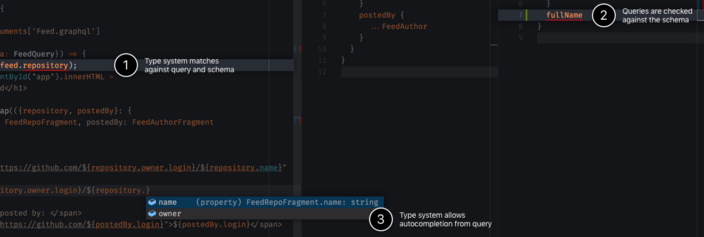 As we know, GraphQL is strongly typed, so we have created a tool to generate API code or type annotations based on a GraphQL schema and query documents. This tool is called “apollo-codegen”.